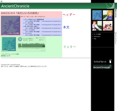 細々と活動してたりしなかったりする同人サークル「AncientChronicle」のウェブサイトを新しくしました。ac.udonge.net大きなデザイン変更はしていませんが、時代にあわせてアクセスカウンターを消したり、Silverlightで動いていた試聴モジュールを削除した…
